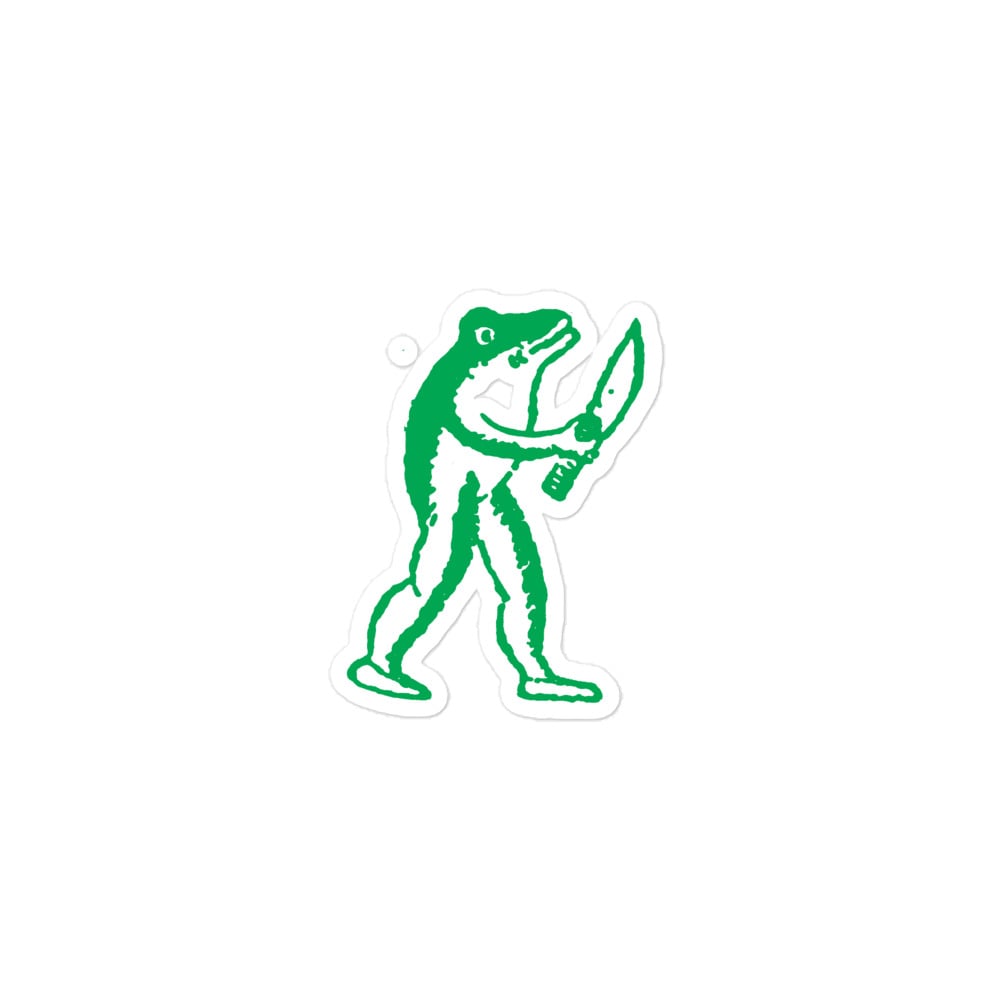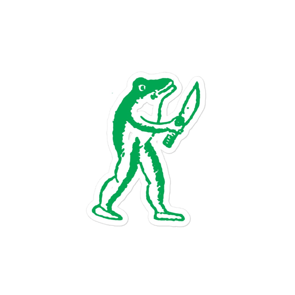 Eugene Teal's mysterious FROG with a Knife sticker. Available in a variety of sizes.